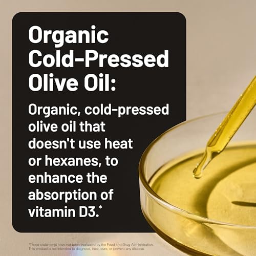 - IN ORGANIC COLD-PRESSED OLIVE OIL: NatureWise Vitamin D3 is formulated with organic, cold-pressed olive oil that doesn't use heat or hexanes, to enhance the absorption of vitamin D3.*